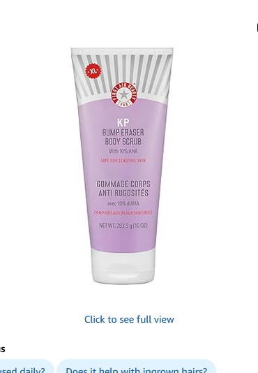 Smooth rough, bumpy skin with First Aid Beauty KP Bump Eraser Body Scrub, a powerful yet gentle exfoliating treatment formulated with 10% Alpha Hydroxy Acids (AHA). Designed specifically to target Keratosis Pilaris (KP), this dermatologist-tested body scrub helps reduce the appearance of “chicken skin” bumps while improving overall skin texture and tone.