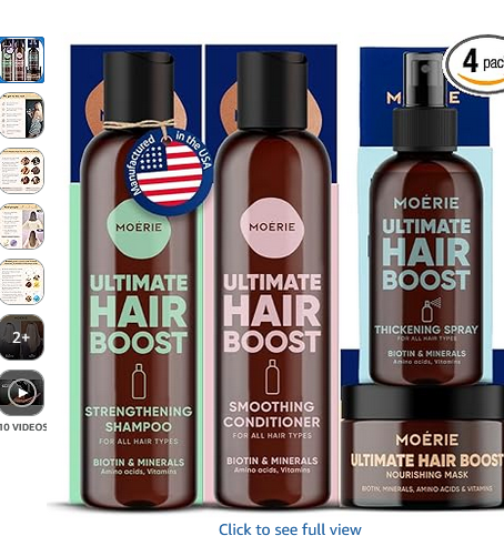 Transform your hair care routine with the Moerie Shampoo and Conditioner Plus Hair Mask and Spray Mega Pack, the ultimate set for promoting longer, thicker, and fuller hair. This complete hair growth and volumizing system combines four powerful products designed to cleanse, nourish, strengthen, and protect every strand—giving your hair salon-quality results at home.